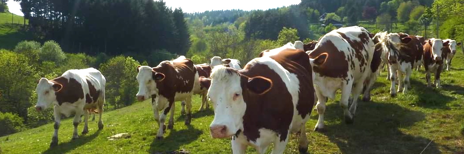 Notre troupeau de 30 vaches laitières montbéliardes nous permet de produire des yaourts et du veau de lait, nous élevons et transformons 30 porcs charcutiers que vous pourrez déguster dans notre ferme auberge.